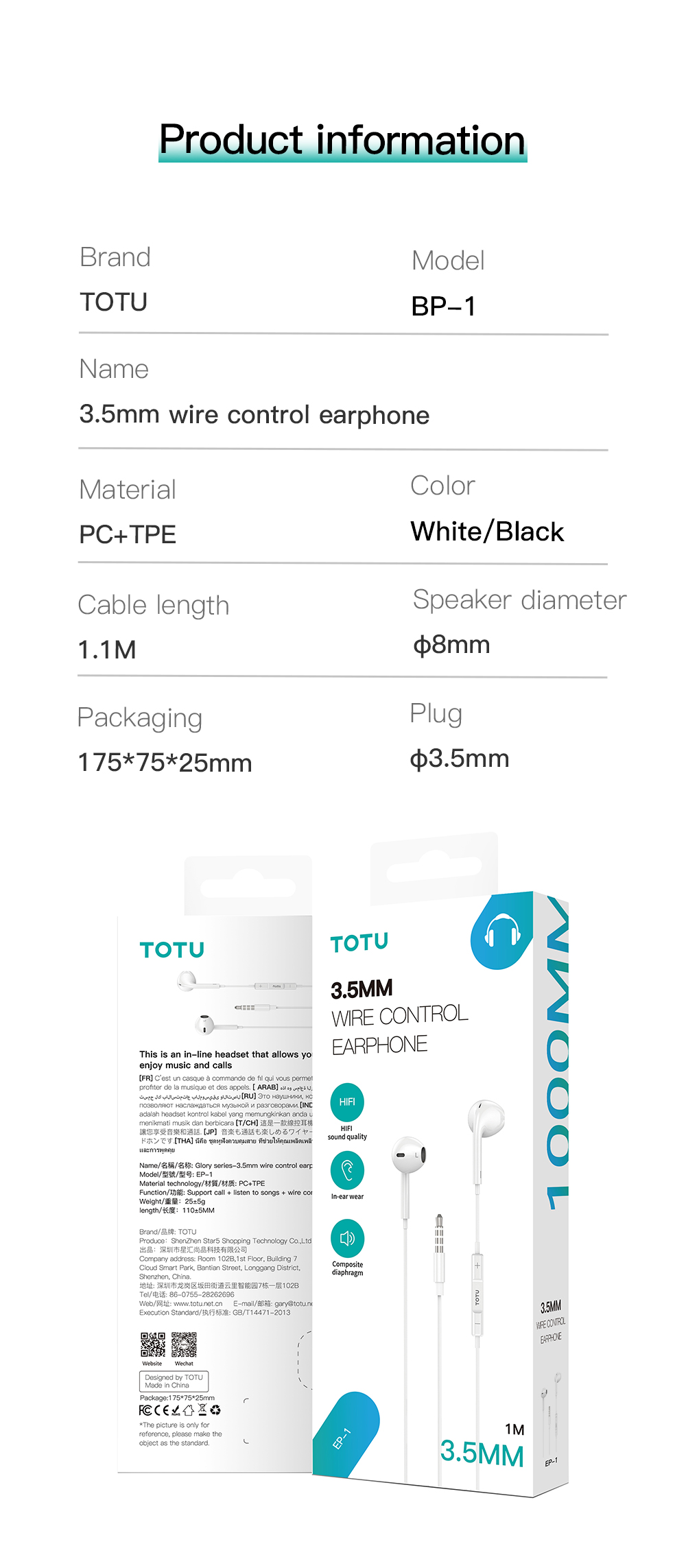 EP-1 3.5mm Wire Control Earphone