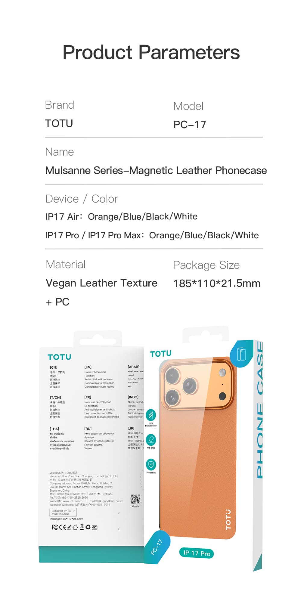 PC-17 Mulsanne Series-Magnetic Leather Phonecase (iP17)