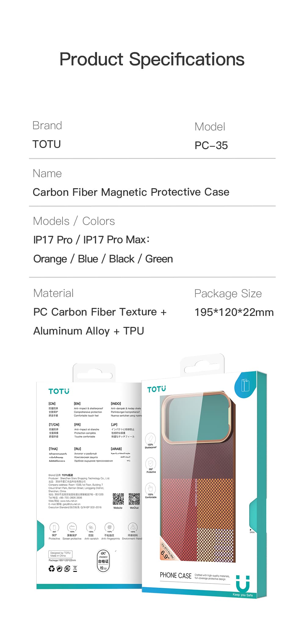 PC-35 Carbon Fiber Magnetic Protective Phonecase (iP17)