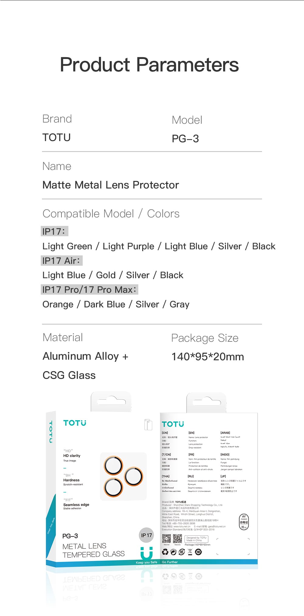 PG-3 Matte Metal Lens Glass (iP17)