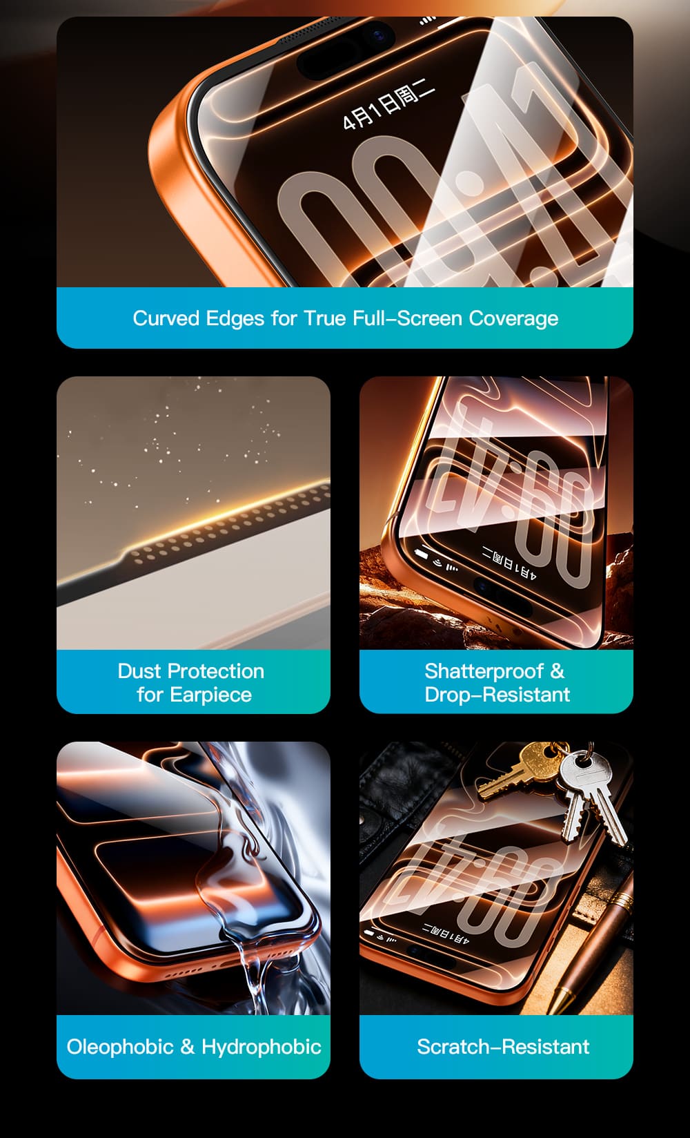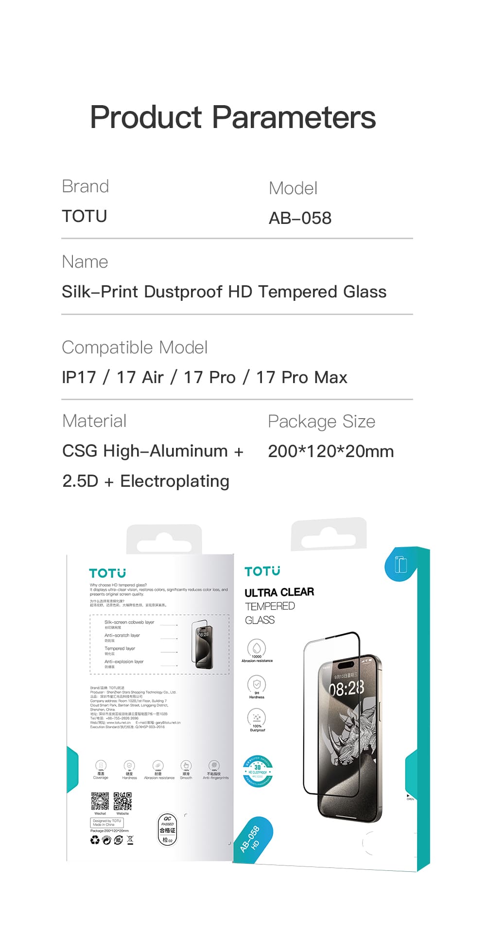 AB-058 Silk-screen Dustproof Tempered Glass (HD) (iP17)