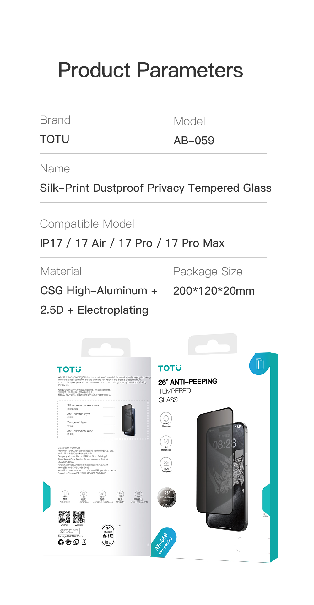 AB-059 Silk-screen Dustproof Tempered Glass(Privacy) (iP17)