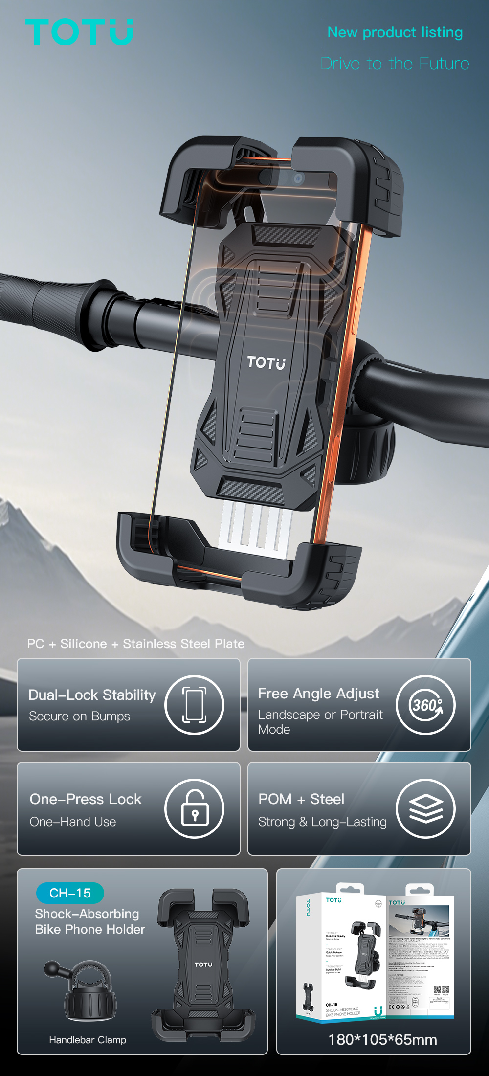 CH-15 Shock-Absorbing Bike Phone Holder