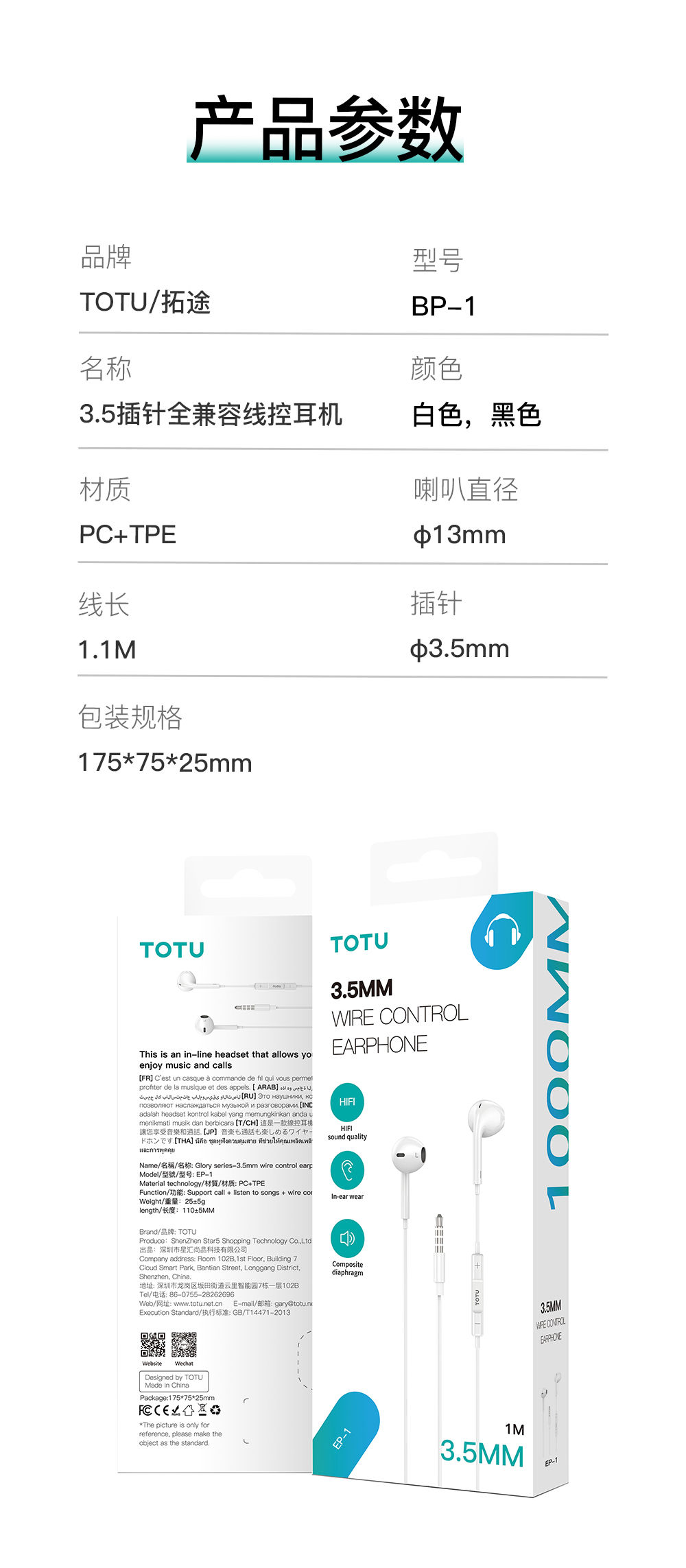 EP-1 3.5插针全兼容线控耳机