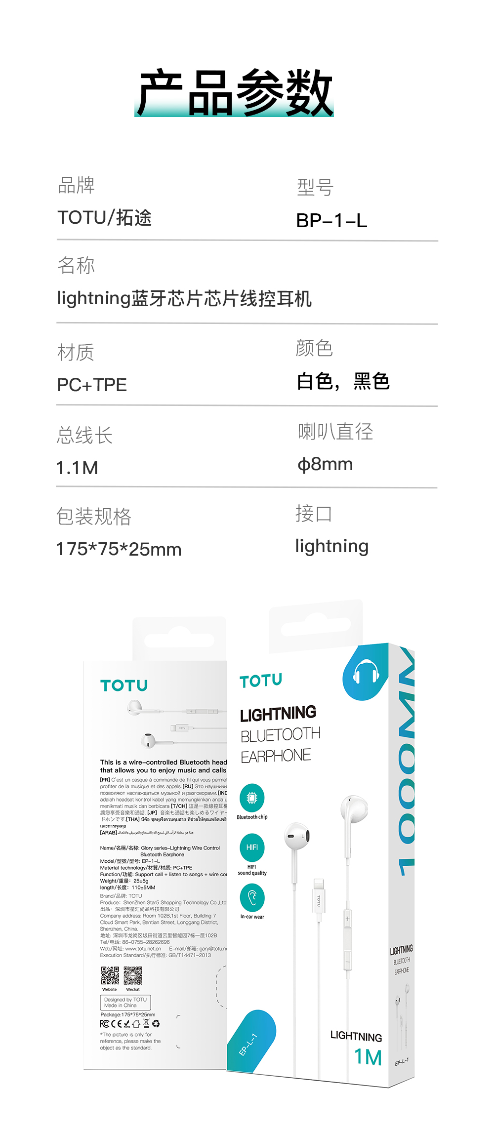 EP-1-L-lightning蓝牙芯片芯片线控耳机