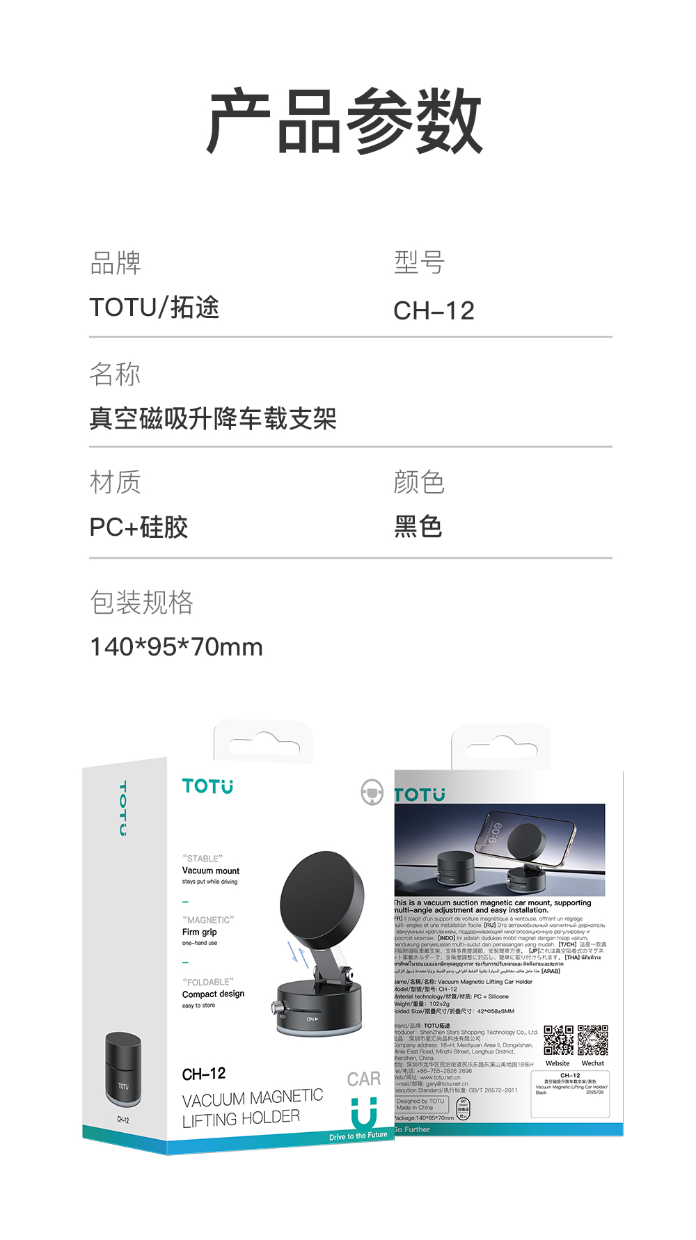 CH-12 真空磁吸升降车载支架