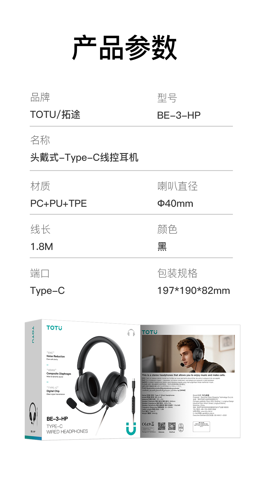 BE-3-HP 头戴式Type-C线控耳机